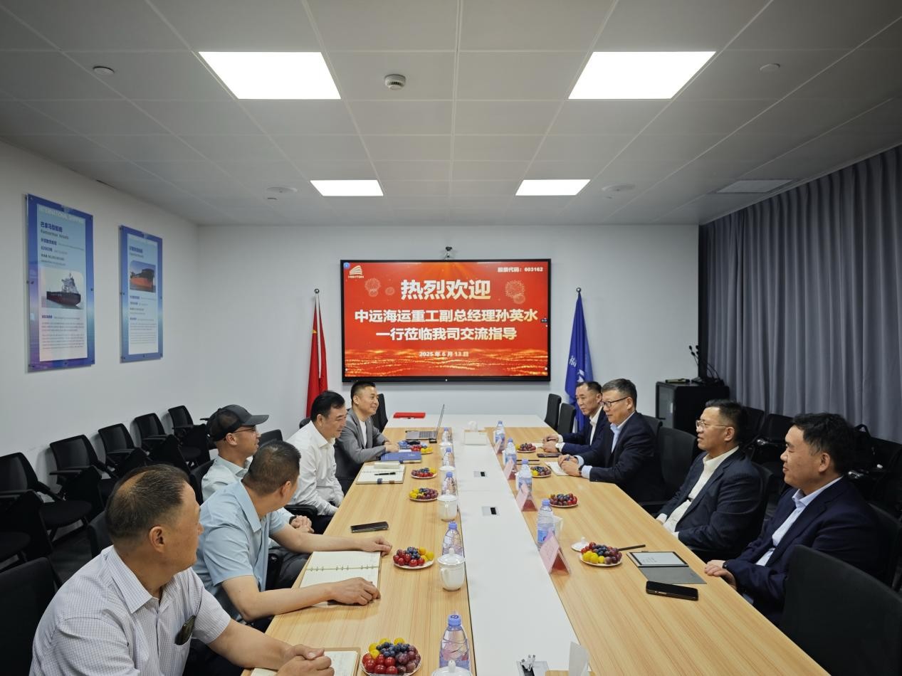 6月13日,中远海运重工有限公司副总经理孙英水、经营中心总经理俞健、经营中心副总经理郭志强、经营中心总管孙泉一行到访海通发展,双方就开展战略合作展开交流。海通发展董事长曾而斌、船管中心总经理梁杰、船管中心副总经理董学海、人资行政中心副总经理李磊、机务技术总监曹成海等参加。